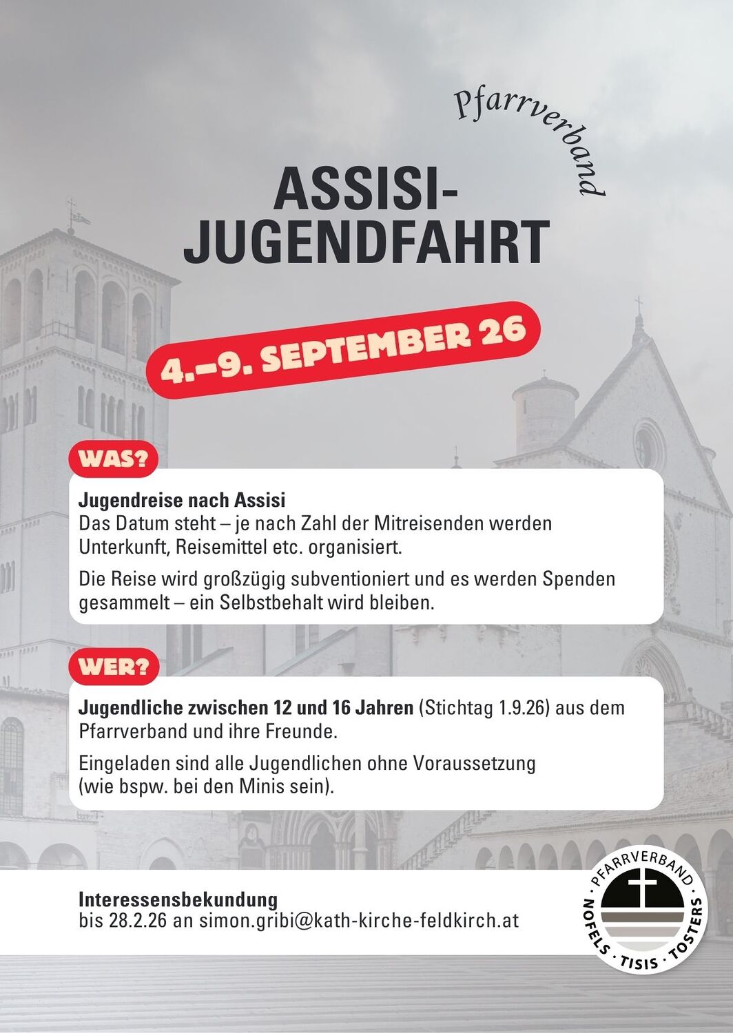 Vom 4. bis 9. September geht es für Jugendliche von 12 bis 16 Jahren nach Assisi!