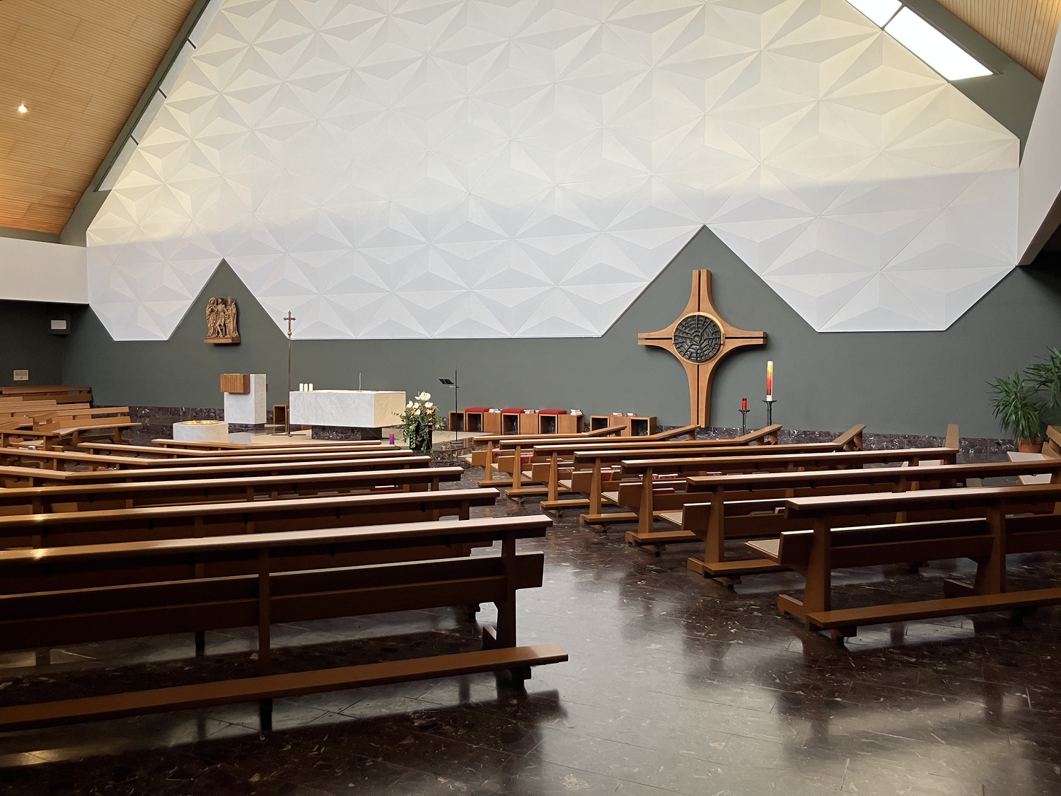 Unter Obmann Philipp Bitsche schrieb der Kirchenbauverein 1967 einen Architektenwettbewerb aus, Architekt Guntram Mätzler aus Bregenz erhielt daraufhin den Auftrag zur Planung der neuen Pfarrkirche. Im Herbst 1969 wurde mit den Bauarbeiten begonnen. Unter der Leitung von Adolf Mayer montierten 1971 75 freiwillige Helfer die hölzerne Decke, wodurch etwa 250.000 Schilling gespart wurden.