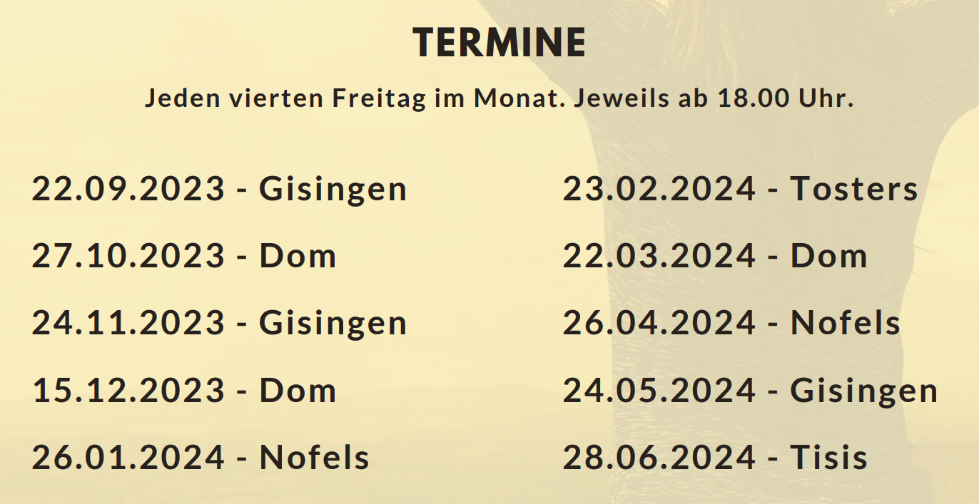 Herzliche Einladung zu einem offenen Abend: Kommen wann und bleiben solange man möchte. Schöne Musik und stimmungsvolles Licht, die Möglichkeit Bibelverse zu ziehen, eine Kerze anzuzünden oder ein Gebet aufzuschreiben, stille Anbetung, Lobpreis, ein Impuls und die Gelegenheit für ein Seelsorgegespräch, eine Beichte oder einen Segen. Von September 2023 bis Juni 2024 findet „Open Arms“ jeweils am vierten Freitag im Monat in einer der fünf Pfarren statt.