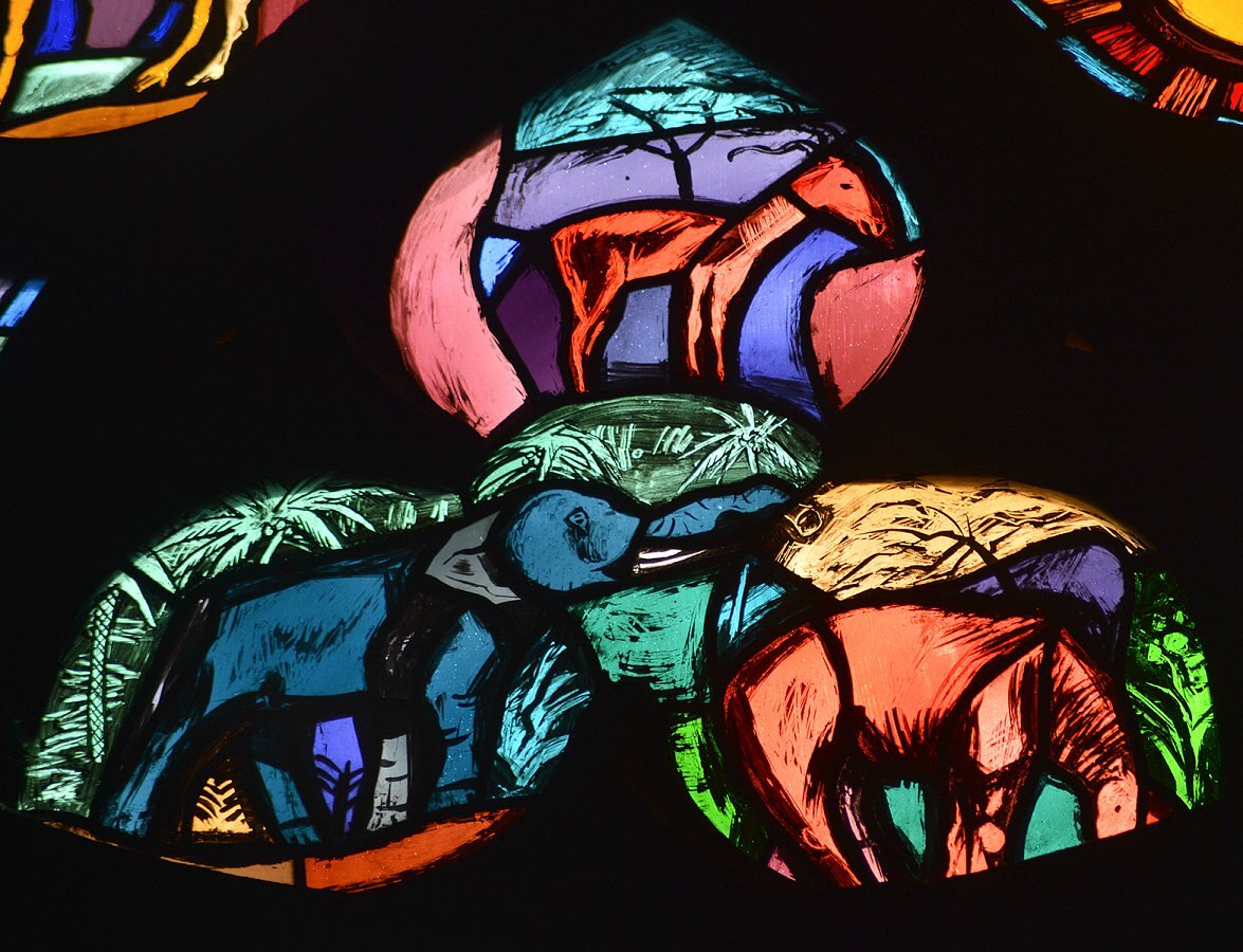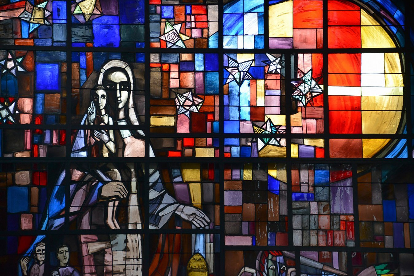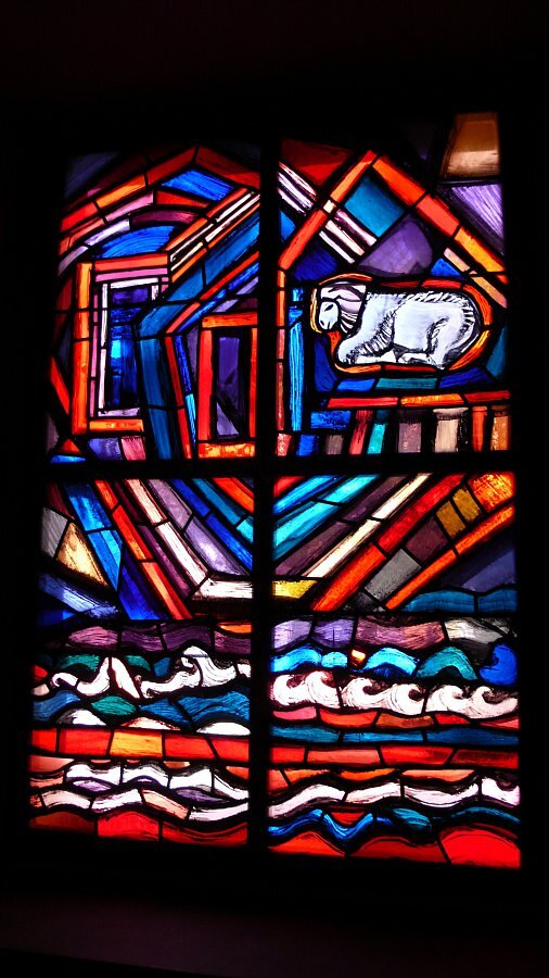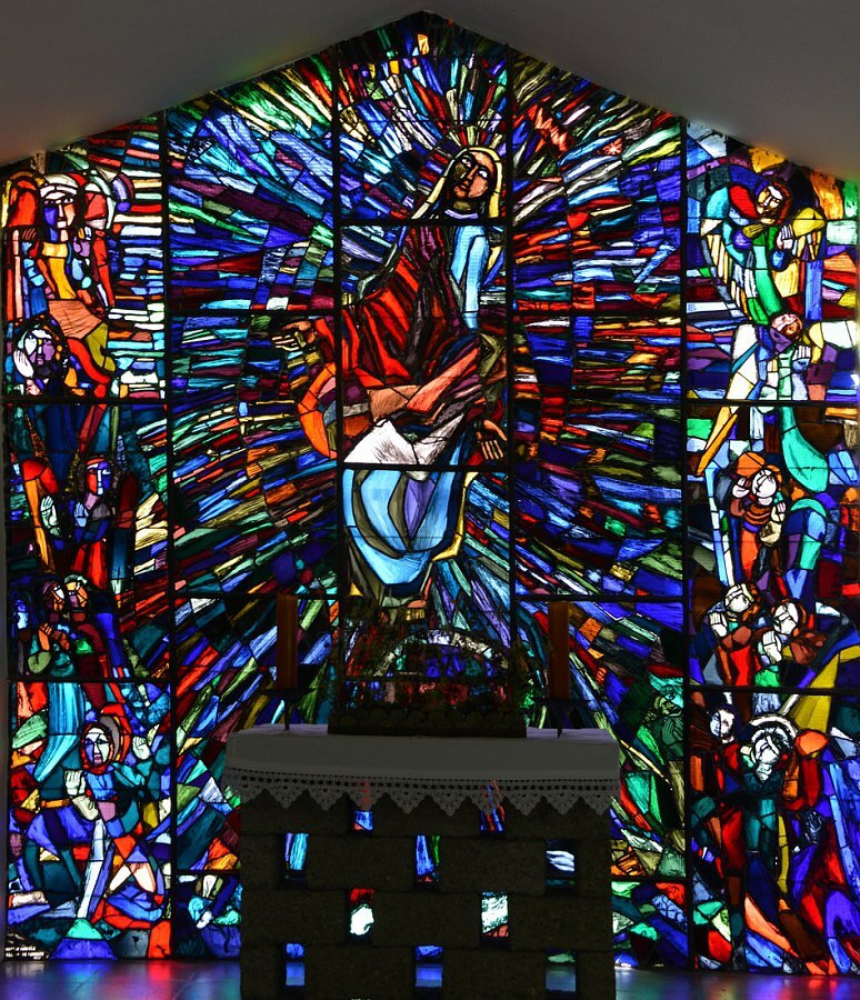 • 1954 Fenster Pfarrkirche Maria Mutter der göttlichen Gnade, WIEN - LIESING ( Rundbau, Architekt Robert Kramreiter )